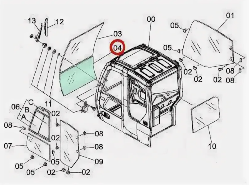 СТЕКЛА КАБИНЫ Hitachi ZX – 1 серия